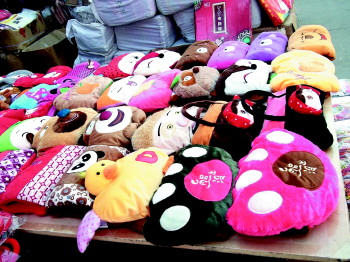 | 市区大陆商业村一家店面门口摆满各式各样的暖手宝。 见习记者 徐文敏 摄 |