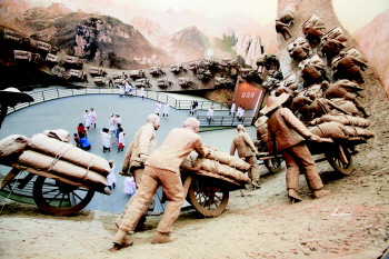 沂蒙军民并肩战斗的雕塑。