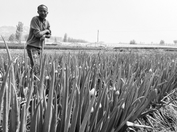 为了拔出地里的大葱,村民高大龙在葱地里给大葱浇上最后一遍水。“我们家今年种了一亩半地的大葱,产量有两万斤左右,虽然产量不错,但是一棵葱也卖不出去。”高大龙一脸愁容地说。