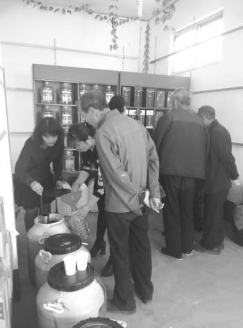 当天赶上了肖庄村逢集,舞台还未搭建好,就有好多赶集的居民前来围观。“我尝了一口散装酒,酒香味很浓厚,口感还不错。”头发花白的赵大爷笑着说,得知刚开业有优惠,他赶紧让店里的老板娘给打了5斤散酒。