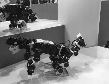 ▲教学研究用的机器人,可通过触觉和声音做出响应的动作。