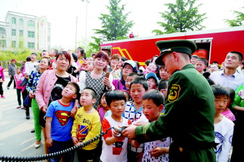 在活动中,消防官兵讲解了贴近现实生活的消防常识,包括灭火器材使用方法、家庭防火常识、火场逃生、救人与自救以及报警的注意事项等;并带领大家参观车辆与装备器材,还让孩子们试穿了战斗服,体验了一次当消防战士的感觉。