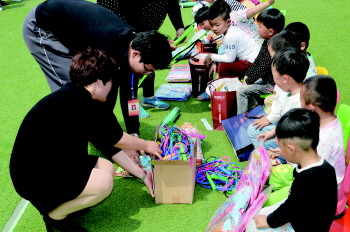 4月26日,市委、市政府接待办联合爱心企业豪尔森置业和著名青年书法家林立华,到选派“第一书记”任职的郯城县李庄镇尚庄社区开展爱心捐助活动。他们为22名贫困儿童送去文具、衣服等物资,走访了3户困难儿童家庭,送去慰问金、米面、衣服等慰问品,并向幼儿园和部分困难儿童赠送书法作品4件,捐款捐物共计3.4万元。 记者 刘遥 摄