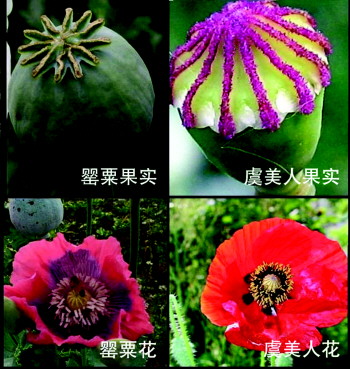 据园林局工作人员介绍,虞美人和罂粟花同属罂粟科罂粟属。二者初看比较相似,但仔细观察,二者之间有着许多不同之处。虞美人花色多种多样,花径相对较小,一般约为5厘米至6厘米,花瓣极为单薄,但有蝉翼般的质感,像丝绸一样;而罂粟花的花瓣多为单瓣或半重瓣,多为红色,花朵较大,花径可达10厘米,花有非常鲜艳的光泽。此外,两种植物的果实也不同,虞美人的果实较小,呈截顶球形,种子细小,呈肾形。而罂粟花的蒴果,则呈倒扣的坛状,直径达3厘米至5厘米,鲜时含有较多的白色乳汁。