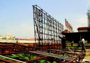 “现在正在拆除的广告是原水果市场的,现在水果市场搬迁了,且广告牌已经老化,存在一定的安全隐患。另外一方面,该广告牌不符合现行的广告牌设置标准。执法人员多次对当事人进行劝说后,当事人表示自行拆除。”郇秀雷说。