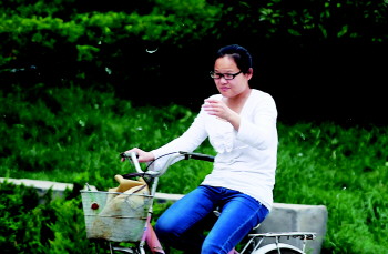 5月14日下午,市民骑行在市区聚才五路上被飞絮困扰。春末夏初,临沂街头继杨絮柳絮后,又飘起法桐飞絮,惹得过敏体质市民烦不胜烦。 记者 梅鲁生 摄