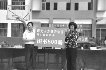19日上午,临沂市保险行业协会副秘书长苗海玲,以及阳光人寿临沂中心支公司一行,来到沂南县张庄镇留田村留田联小,举行“我是一缕阳光,温暖整个世界”爱心捐赠活动。活动共捐赠100套课桌椅,500册图书。