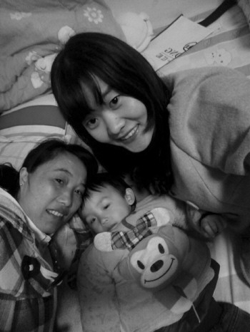 李梁媛(右)与卢少芳(左)、小侄儿在一起。