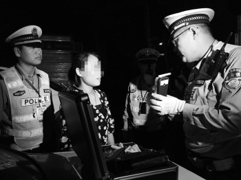 当晚9点半多,在大山路与西外环交会路口,民警对来往车辆例行检查。此时,沿大山路自东向西驶来一辆现代轿车,开车的是名年轻女子。民警拿着酒精检测棒对女子进行检测,没想到,警示灯亮了起来。