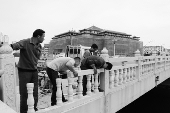 20日下午2点左右,临沂市城市道路维护管理处工作人员正在沂蒙路涑河桥维修护栏。据了解,此次维修的护栏位于沂蒙路涑河桥东侧南桥头位置,共使用2根大理石护栏与8根大理石立柱。“该桥原来的大理石护栏已经掉进河道损坏,此次维修所用的大理石立柱均是从厂家加紧定制加工的,3小时左右便能完工。”一名维修的工作人员介绍。