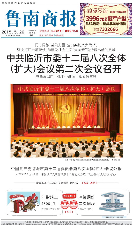 中共临沂市委十二届八次全体(扩大)会议第二次会议召开