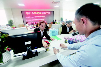 临沂金牌物流信息平台工作人员正在给客户办理手续。