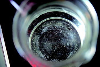 半程镇清沂庄村一村民家中自来水中的沉淀泥沙。