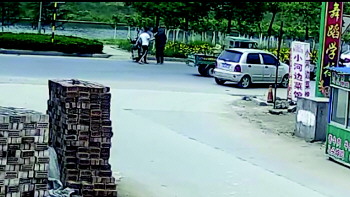徐家君说,5月10日下午1点钟左右,他骑着摩托车从南向北行驶至该路口,因为涑河南街东西方向的车很多,所以他在路南停下车等待过马路。他刚停车没多久,后面一辆轿车也跟了上来要右转,因为他停在前面,挡住了轿车的去路,车主不停地按喇叭示意他再往前走些。