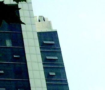 4日上午8时57分,有目击者拨打119报警称,位于河东区政务大厦的楼顶上,有4名男子欲跳楼。九曲消防中队接警后,迅速赶往现场救援。