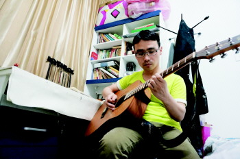“之前没有条件接触音乐,有了这把吉他,我忽然觉得打开了一个崭新的世界。”胡磊说,尽管当时什么都不会,自学用的是舍友的破旧吉他书,练习的谱子也是借的,可自从接触了吉他,胡磊就觉得再也离不开吉他,再也离不开音乐。