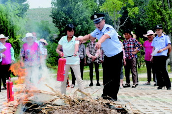 为增强人民群众消防意识,杜绝消防安全隐患发生,入夏以来,沂南县马牧池派出所对辖区内企业、社区等单位进行消防安全检查,并主动为群众“传教”防火真“本领”,让群众熟悉消防知识和熟练应用消防器材。