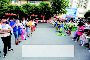 14日,为期3天的临沂市2015年初中学生学业考试正式开考。记者发现,每个考点门口都有辅导机构打出“新高一衔接班”的旗号。初中毕业后需不需要提前预习高中课程?面对铺天盖地的辅导机构宣传,受访的3/4的学生表示会选择上。有关教师则认为,不要盲目攀比,应根据自己需要选择。图为14日,考试还未结束,考点门前已围满了发传单的人员。 记者 廖杰 郇恒雪 徐文敏 摄