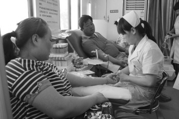 6月14日是第12个“世界献血者日”。市卫生和计划生育委员会、市红十字会在全市开展主题为“感谢您挽救我的生命”宣传活动。截至14日下午4点,仅临沂人民广场献血点就有212位市民参与献血。 记者 周广聪 摄