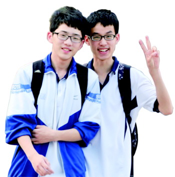 走出考场的两位考生淡定从容地面对镜头微笑。