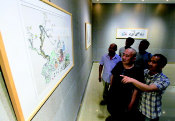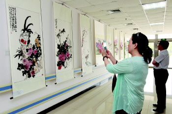 6月21日,“一方莲池”国画作品展在临沂市群众艺术馆举行。本次国画联展共展出千余副优秀国画作品,其中包括了当代画家黄品臻、张景奎的作品,气势磅礴的国画作品吸引了众多书画爱好者前来参观学习。 记者 廖杰 摄