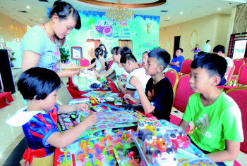 百余名孩子和家长拿着准备好的“宝贝”,现场“摆摊”,当起“老板”做起“买卖”。