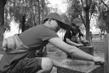18日下午,临沂市园林局志愿者在阳光沙滩柳树林中清洗被野外烧烤者污染的市政设施。为迎接创卫复审,志愿者们还印制了宣传口号和标语,在景区悬挂,提醒休闲市民爱护环境,健康生活,文明休闲。