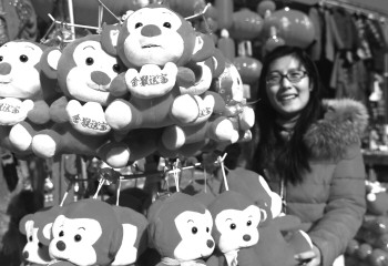 1月24日,市民徐女士在水田路选购毛绒玩具。随着猴年新春临近,临沂商城的年味也愈加浓厚起来,红灯笼、中国结等各种春节饰品琳琅满目,到处一派喜迎新春的红火场面。 本报记者 梅鲁生 摄