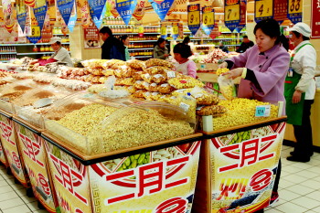 市民在市内一家大型超市选购炒豆。