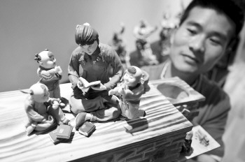 近日,郯城县面塑传承人韩红元展示新创作的面塑作品《传承》。郯城面塑距今已有一百多年的历史,2016年被列入临沂市第五批非物质文化遗产保护名录。今年27岁的韩红元是郯城面塑的第四代传承人,到北京、大连等地拜师学艺,吸收各地面塑精髓,创作的《历史人物系列》《民间故事系列》等郯城面塑作品,多次在全国非物质文化遗产制作大赛中获奖,并被多家博物馆、民俗馆收藏。 通讯员 房德华 记者 李晖 摄